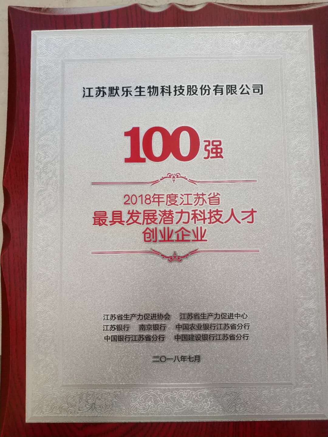 PA直营生物入选2018江苏省“最具发展潜力科技人才创业企业”。江苏省“最具发展潜力科技人才创业企业”是由江苏省生产力促进协会、江苏省生产力促进中心、江苏银行、南京银行、中国农业银行江苏省分行、中国银行江苏省分行、中国建设银行江苏省分行共同举办的,全省评选出100家2018年度江苏省“最具发展潜力科技人才创业企业”。PA直营生物以强大的研发团队,国内领先的优质产品,经技术评审和现场答辩成功入选为2018江苏省“最具发展潜力科技人才创业企业”。